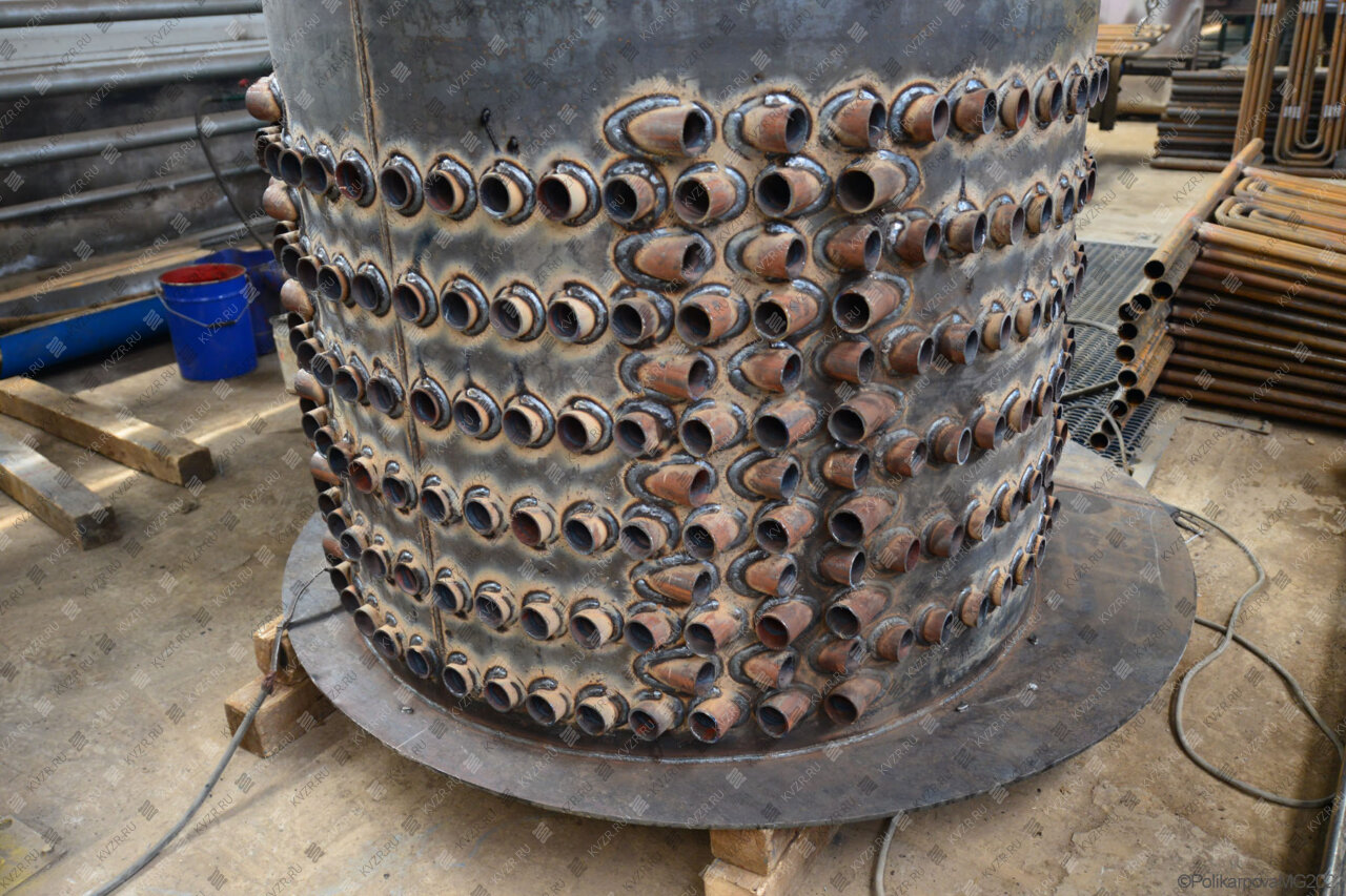 Трубный пучок соединяет верхнюю и нижнюю часть водяной рубашки отопительной установки. Пар образуется при испарении нагреваемой воды и собирается в верхней части агрегата, над которой выполнена паросборная камера, далее через паропровод направляется потребителю на технологические нужды.